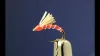 C-13 (Cicada-13) Hook: Dry fly hook, #4-14 (#10 used in the video), Thread: Gudebrod 8/0, green, Tail: Krystal flash, opal - short, Abdomen: Fox squirrel, dyed olive; SLF Prism, peacock - mixed (or