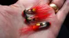 Hook size 10 Thread Black 8/0 Body Dyed Green Peacock Herls Red Holo Rib Wings Black Marabou