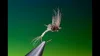 Now that the feather is split...let's tie the fly!