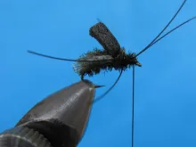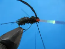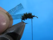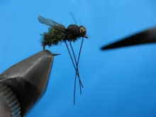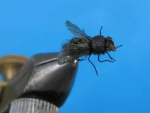 The common housefly is indeed... eh.... common, and an obvious insect to imitate. Bulgarian Radoslav Kiskinov has made a simple but very efficient pattern imitating Musca domestica using foam, raffia and peacock herl, which will catch several species when fished dry.