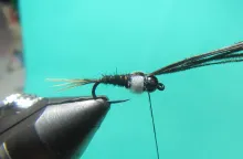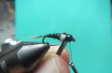 6. Lift pheasant tail fibres up and dub thread and under the pheasant tail fibres to bead.
