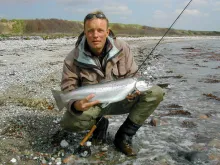 Jens caught his fish on a small pink fly. A size 6 in this case.