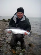 They are few and far between. We have a log of all fish caught by a dozen or so of anglers over a period of more than 10 years. It has very few Danish sea trout over 5 kilos or 10 lbs. on record – like 4 including Jens' fish out of about 1,400 bright sea trout and about 3,300 fish altogether. Coastal sea trout of this caliber are usually about 75 centimeters (29.5”) or more, so you can see that Jens' dream fish measuring 98 is in its own league.