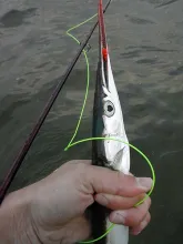 They are a very popular quarry and attract a lot of anglers to the water. They are usually numerous and easy to catch, and a perfect target for the fly angler - especially the beginner who wants to try the feeling of catching a fish in the salt. Garfish dont' require much finesse. Short, clumsy casts are fine, and precision is of little importance. Armed with a light fly rod and some small orange flies, it's difficult to go wrong with these fish.