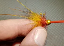You can also vary the fly in other ways. The cone configuration can vary, and one of the original variation was more flash and a hackle in the front, which can add more visibility and mobility to the fly.