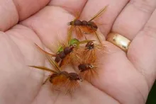 One day, while fishing my favourite water, Barnsfold in Lancashire, which is surrounded on one large side with a good head of pine trees round the reservoir, I noticed quite a few terrestrials being blown on to the water. The trout were going crazy for them.