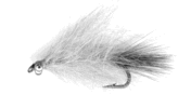 The tail can be formed by tying in loose fibers, but forming a normal, turned hackle, and tying it down leaves a larger tail. Dub thread with fur and cover the shank. Make the fly fairly thick. Stop just in front of hook eye, and tie in eyes beneath the shank. Eyes can be glued with superglue for a more durable fly.