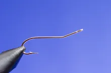 1. Bend the hook up 1/3 back from the eye. This helps set up the right shape for the eyes and antenna.
