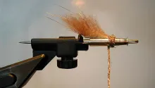 Theses short tubes can be tied on any tube vice that has a suitable diameter center rod. I use a Fisker tube tool and a large needle for the prupose. The combination holds the tube firmly. I line the metal tube with plastic after having tied the fly. That is possible with this particular fly, and gives me the option to use a larger diameter pin to hold it, resulting in more stability.