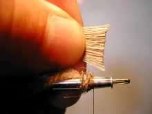 4. Select deer hair that is fairly straight and well suited for muddlers. I personally prefer the natural hair, but dyed hair can of course also be used.