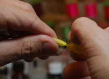 Hackling a tube fly with mallard is a great way of finishing it. The long mallard fibers will not only give it a great speckled veil, but also gather the rest of the fly in the water when the fibers sweep along the body and wing of the fly.