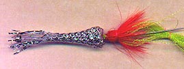 By this time I lost count of my trips to the library loaded down with my priceless catalogs (damn lucky I have two such places in my house) but I envisioned a sort of slider constructed almost entirely of synthetic materials. For the head I'd go to a new concept I've been playing around, Airheads, a hollow affair made with braid and epoxy, sort of a popper turned around backwards. Off to my tying room, congratulating myself on my brilliance I started to whip one together and ended up with one giant glued up mess (no, if I go to the library this time it'll be to throw up). Clearly somewhere between conception and final product something went amok.