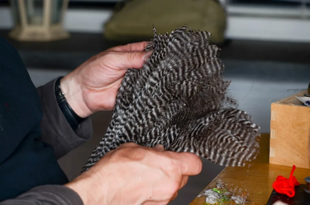 The supply of feathers on a good patch can be almost endless. Here it's a large hen cape with nice barring.