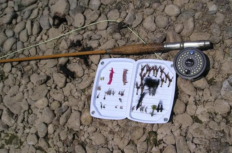 My setup for Turkey Run: Old bamboo rod I refinished, floating #8 steelhead line (WF with a longer back of the taper for better line control at longer distances), and a flybox with Dads