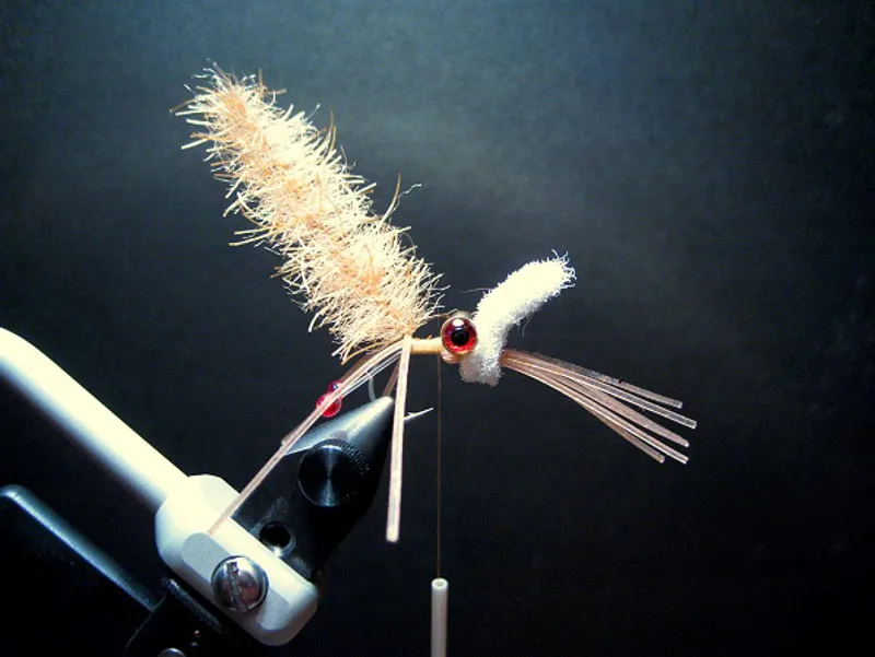 Front legs secured with chenille and Tarantula Hairy Brush in place and ready to be wrapped to form the body