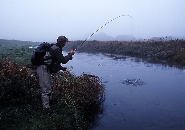 Ripley Davenport taking a fat brown trout - the first of three over 38cm on a size 20 blood worm in Denmark.