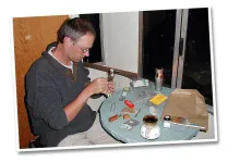 Watching Martin tie CDC/Elk Hair Caddis by candle light inside a red caboose was very different.