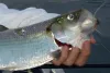 Water conditions change from day to day and one location varies from clear, calm water to muddy water with high waves. The fish are there almost no matter what, and often rough weather offer better fishing than a calm surface. |