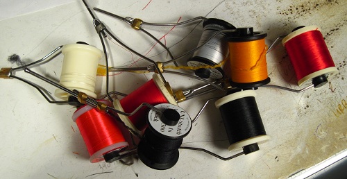 BobbinsYou can't have too many bobbins, but they don't all have to be the very best quality. I have two good ceramic bobbins that hold my white and black thread (Danville 6/0 Flymaster), and random other bobbins for other stuff that I use a lot. I really hate changing threads on bobbins, so I always try to have the threads I use most often ready to go. The next time you order some materials, add an extra $10 investment in a couple cheap bobbins. You'll be glad you did. |