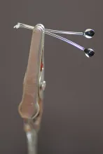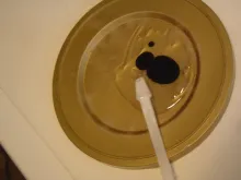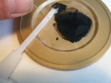 4. Melt the nylon. Mix the epoxy with a drop or two of hobby paint or varnish. Apply to the eyes and let them dry on a fly dryer using painters tape or even better a rubber band to hold the eyes.