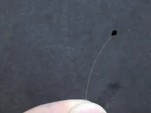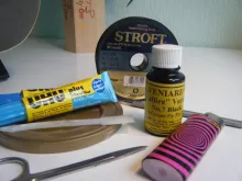 3. Color the nylon using a pen in grey, brown, rusty, black or what ever. Melt a nice little eye. Add the epoxy.