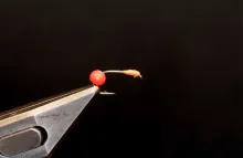 Beads or cones are a whole different game. Most beads and cones slip over the hook point up the shaft and sit close behind the hook eye. In order for them to be able to pass the barb and the hook bend, they mostly have oversize holes and many are even countersunk and some beads are slotted. That means that once they are in place, they are loose. A lot of tyers solve this with glue, and I often do the same thing, since beads are notoriously prone to moving down the hook shank in the cast if they don’t sit really well.