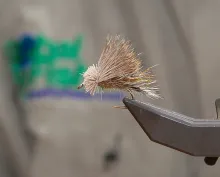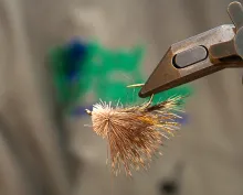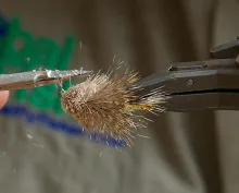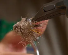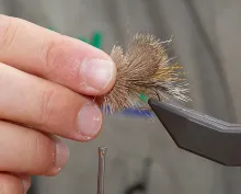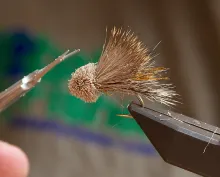 A notice on the deer hair, though: get good hair - the best you can find, and ask for hair for muddlers or deer hair bugs. Make sure it has as little underfur as possible, and get some natural (undyed) first. Dyed hair can be fine, but chances are the dying process has ruined its ability to flare and spin. Some dyed hair is great. Some is useless for this purpose.